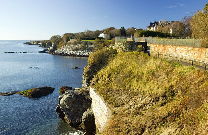 Some of the best views of the Newport mansions are from Cliff Walk. Here, you see the side that provided the backdrops for elegant lawn and garden parties in the Gilded Age. Marble House, The Breakers, Rosecliff, Beechwood, Rough Point, and several others share the preferred location between Bellevue Avenue and the sea. The shore side overlooking Rhode Island Sound varies between shingle beach and rough cliffs that are sometimes so steep that Cliff Walk has to tunnel through them. Access the path - which is paved part of the way - from the bottom of Forty Steps (at the end of Narragansett Avenue), or begin at Easton's Beach on Memorial Boulevard.