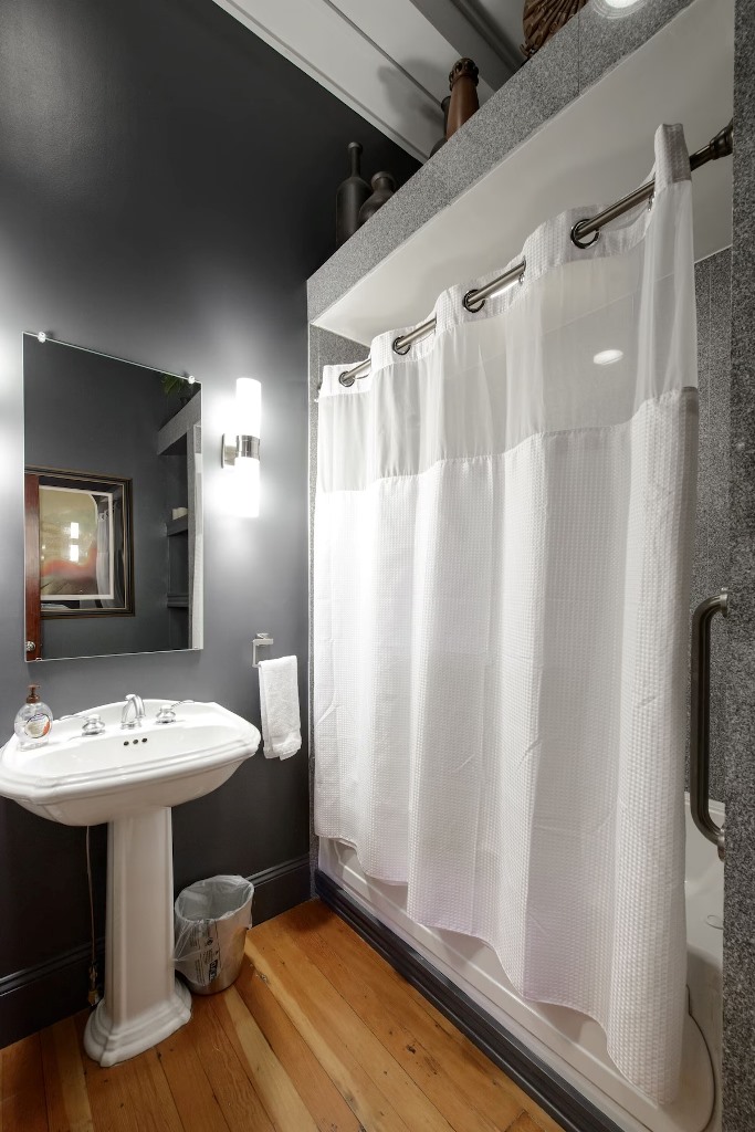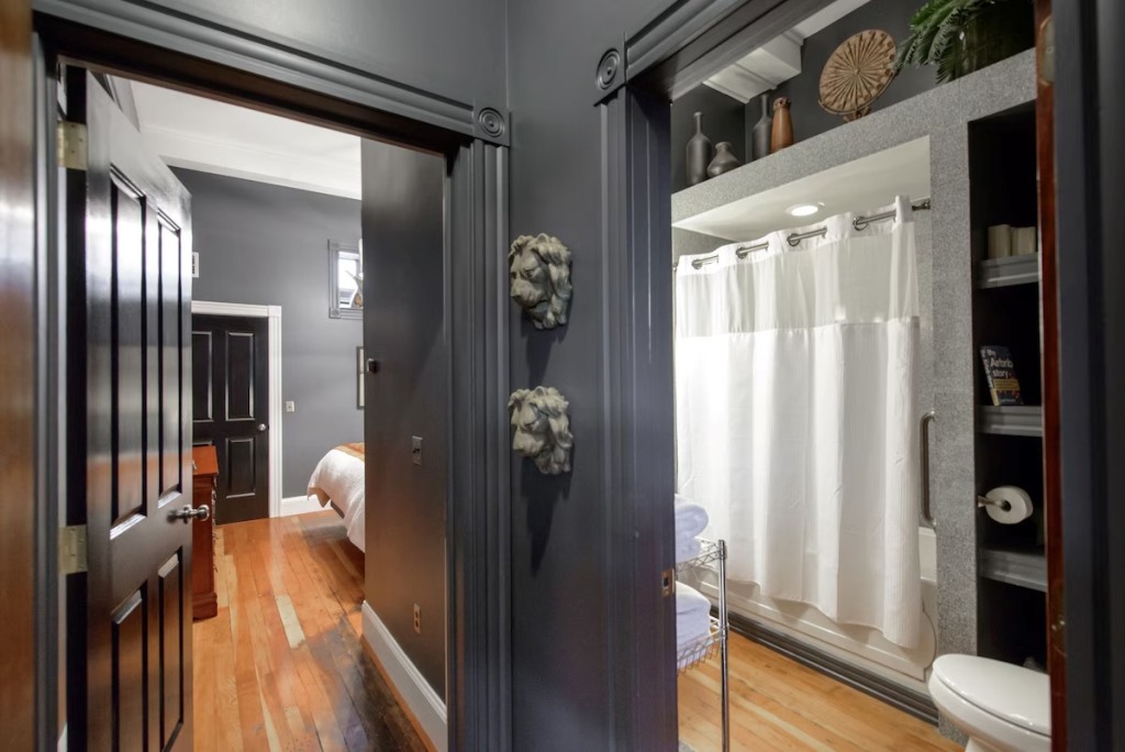Also, the half bath is very small and located through the bedroom.